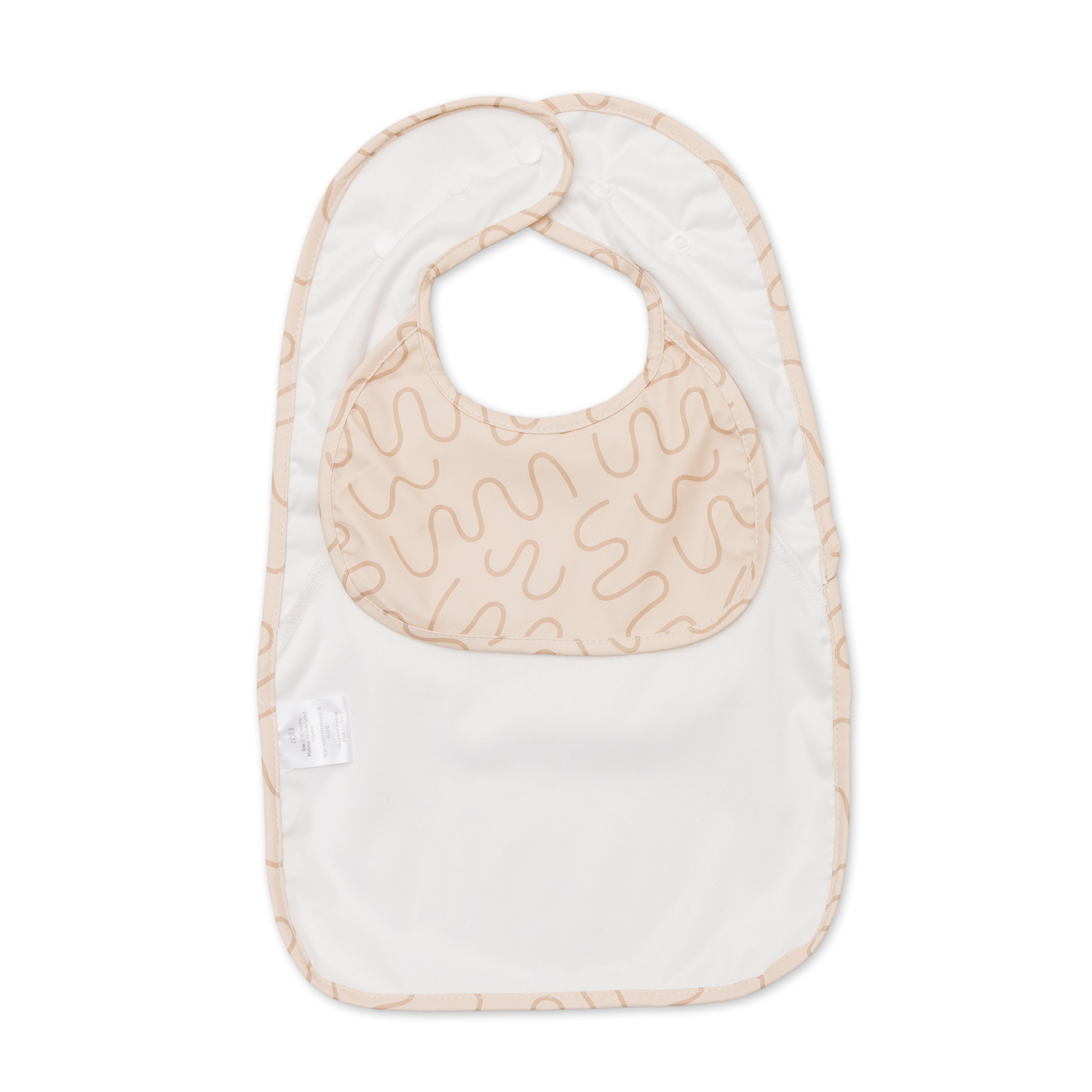 Front hem split lets the bib sit flat and flush when your little one is seated in a highchair, giving more coverage during messy mealtimes.