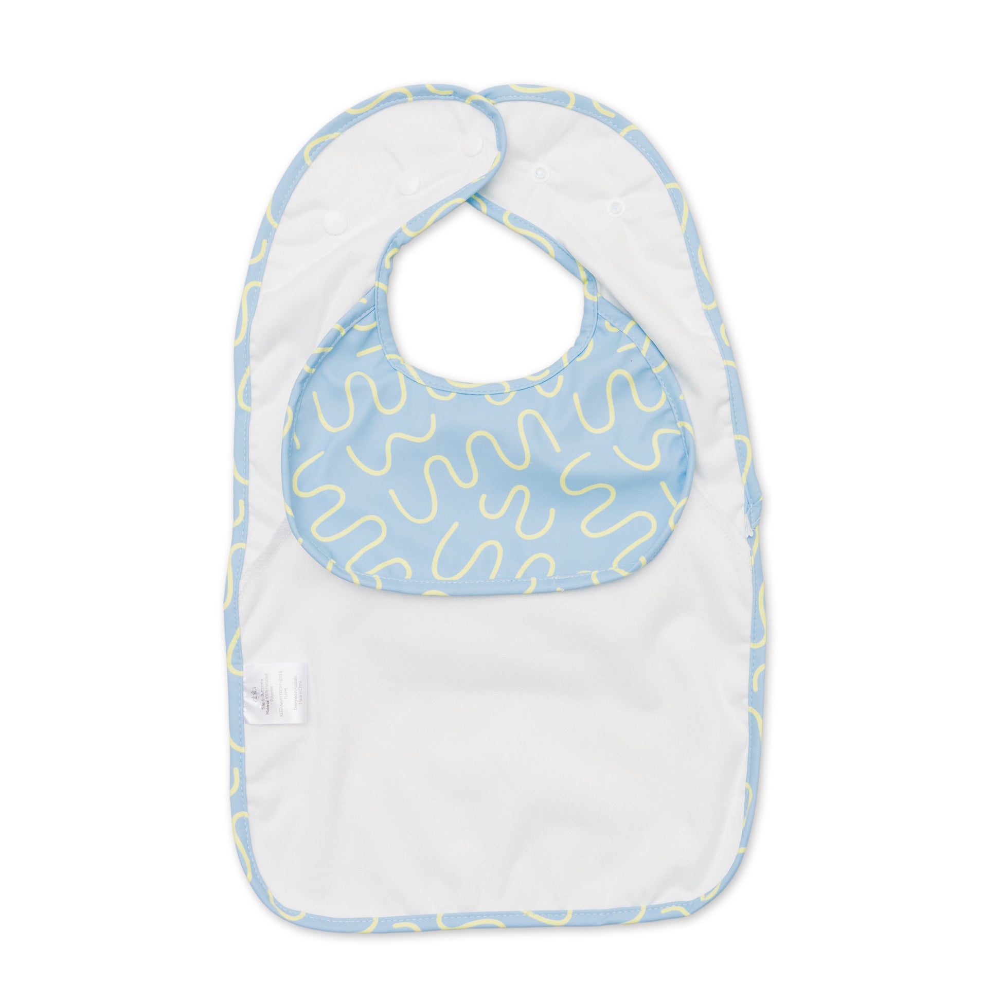 Front hem split lets the bib sit flat and flush when your little one is seated in a highchair, giving more coverage during messy mealtimes.