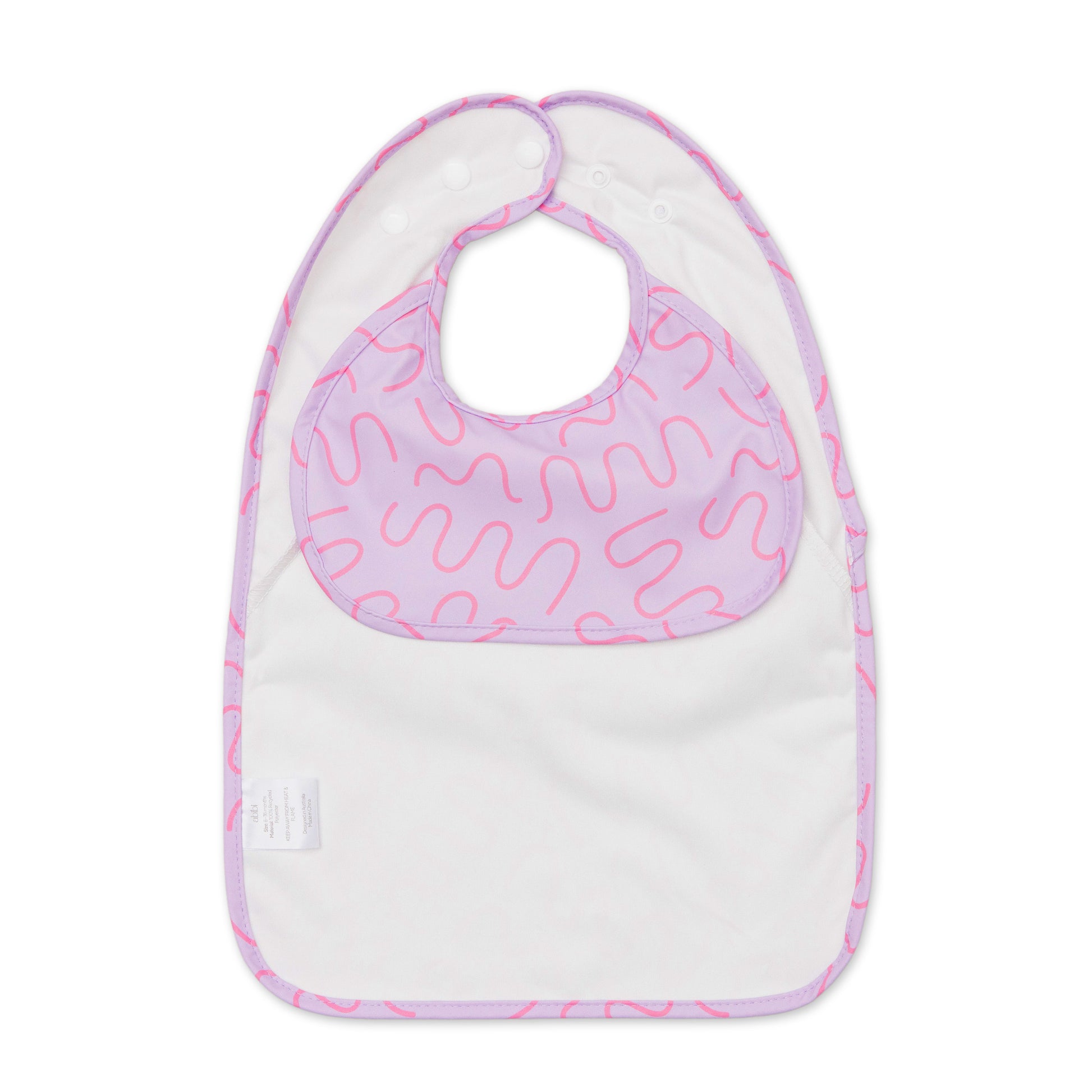 Front hem split lets the bib sit flat and flush when your little one is seated in a highchair, giving more coverage during messy mealtimes.